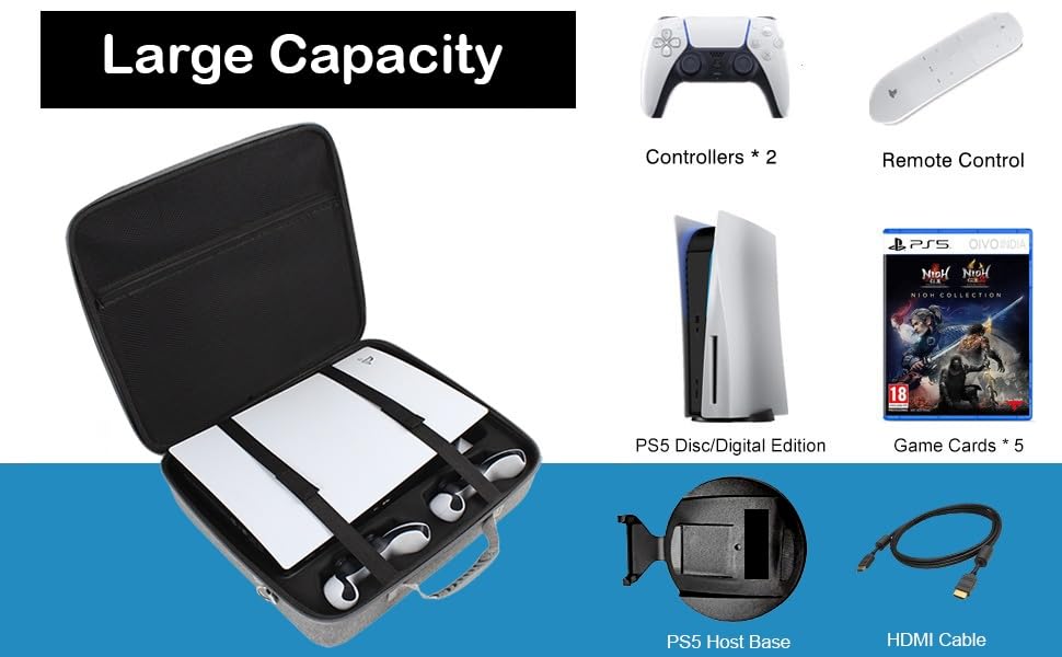 • PSS-Storage and Organizing Case: With this gaming bag, it is very easy to transport the complete gaming console. It is compatible with PS5 and features padded slots that can fit a host and 2 controllers just perfectly. Also, it has an interior pocket that provides additional storage space.
