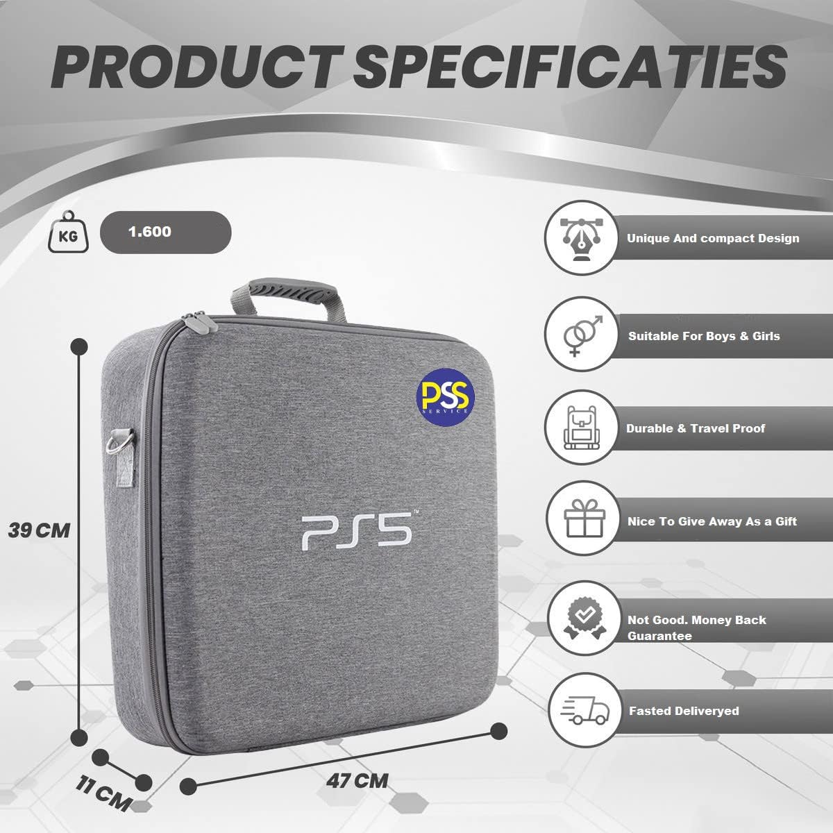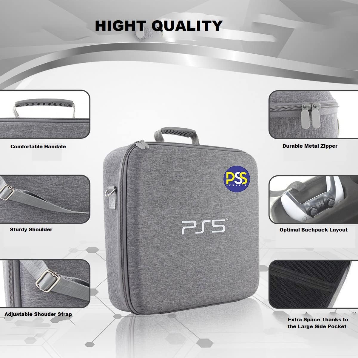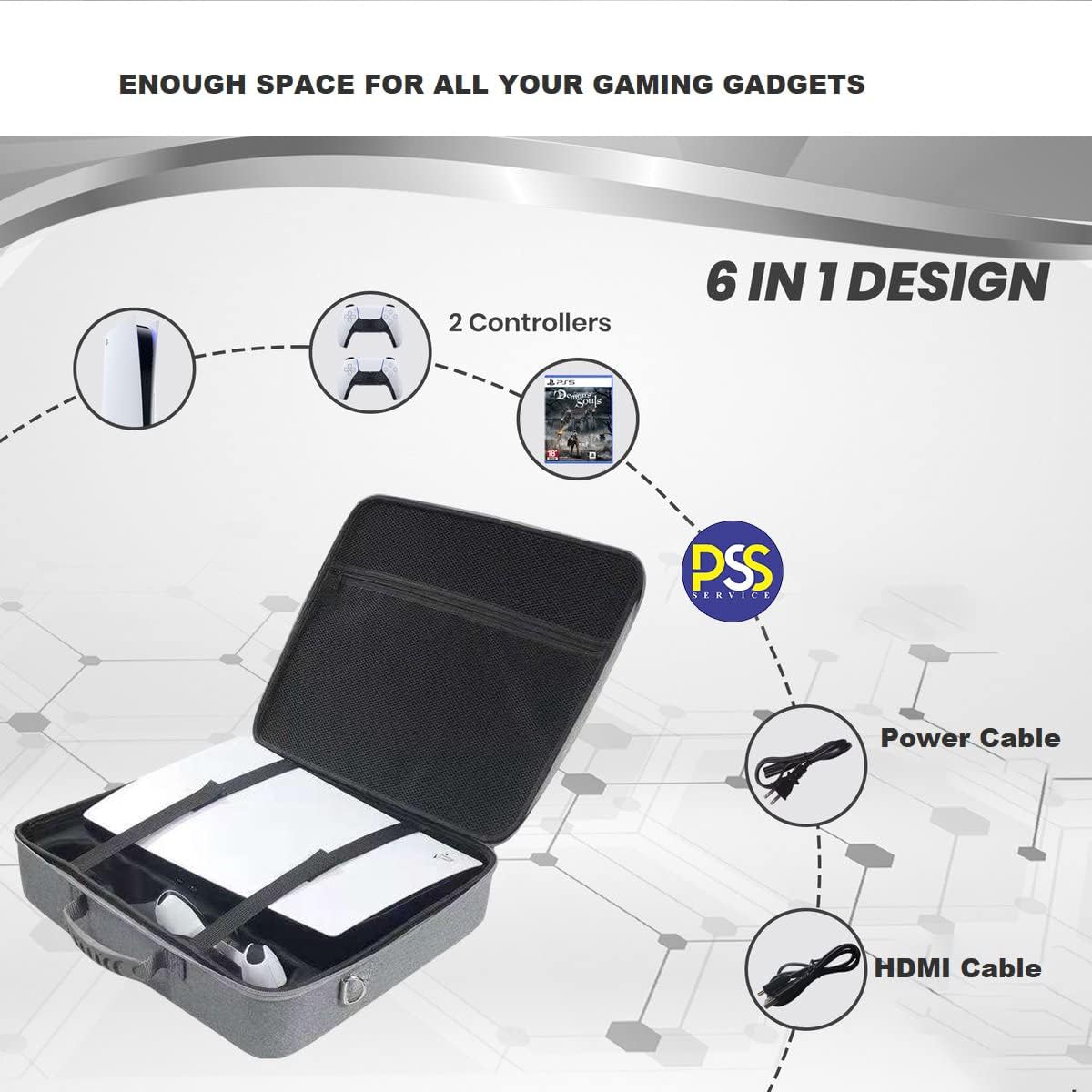 PSS Hard Carrying Case Storage Bag for PS5, Travel Bag Compatible for Play/Station 5 Console Disk Digital & 2 Controller, Stand, Cable, Waterproof and Shockproof Nylon Fabric (PS5 Accessories)